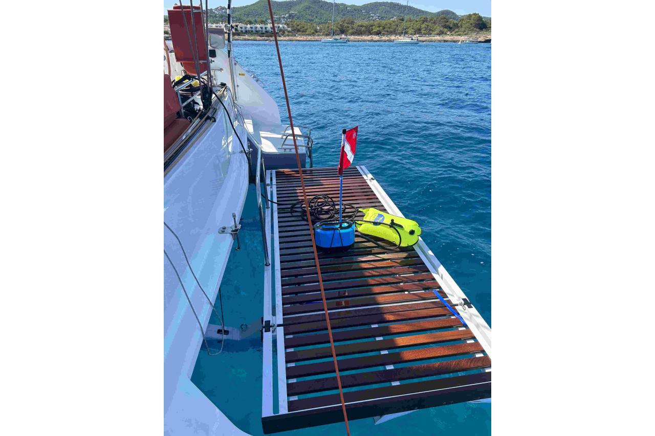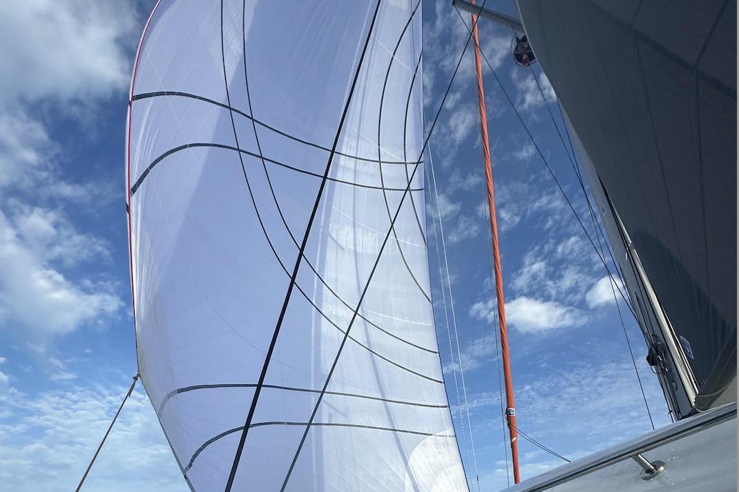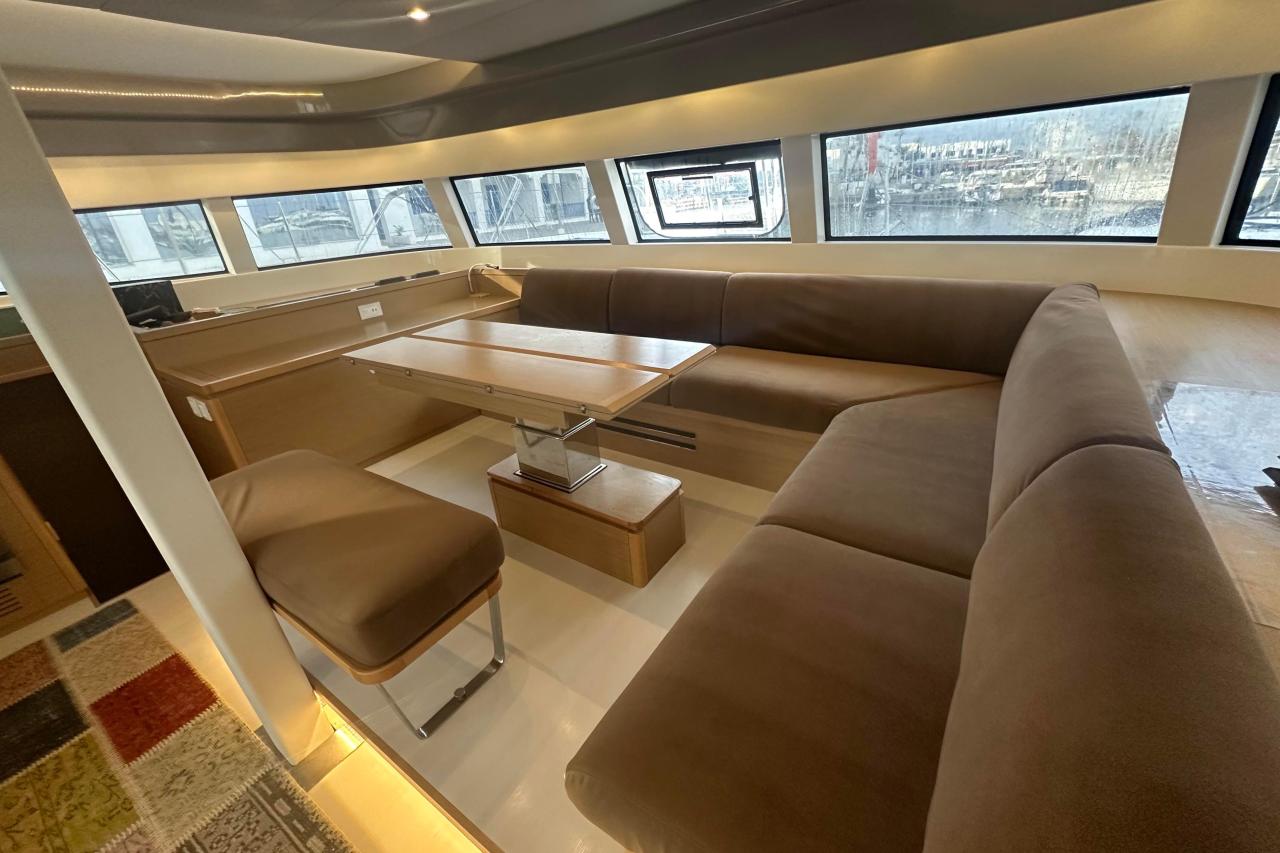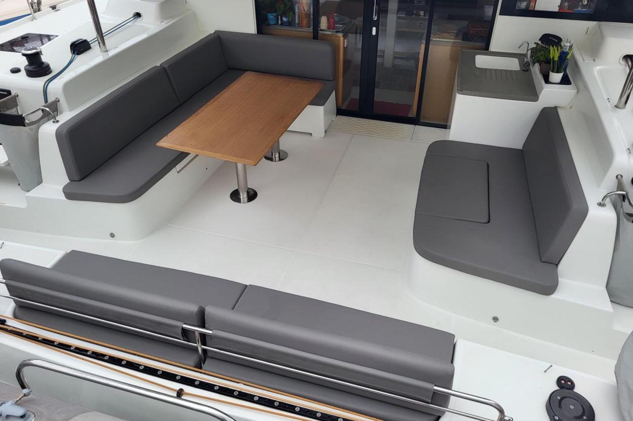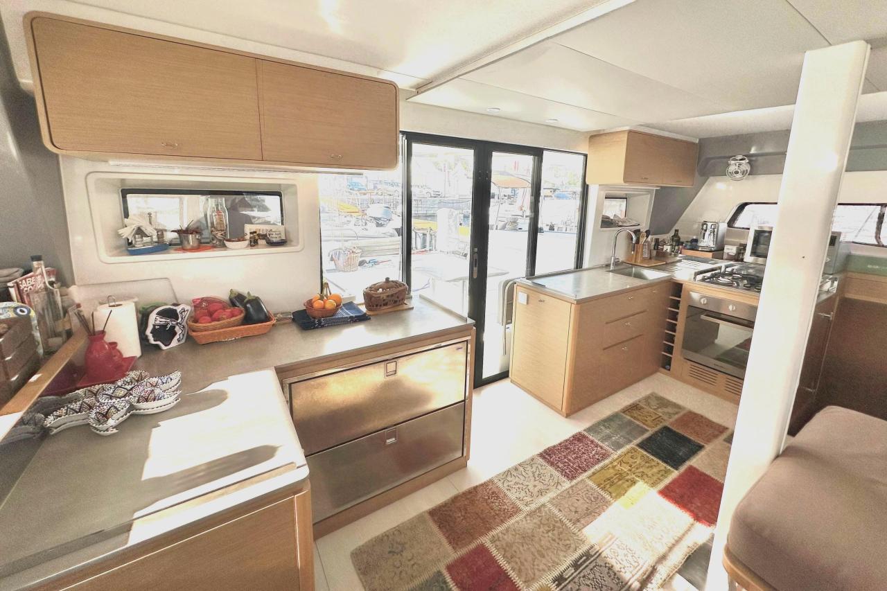She is powered by twin YANMAR 4JH80 engines ,2 x foldable propellers and bow thruster. Average cruising speed is 8 knts.The sail wardrobe includes a Genoa, a full-battened sail, as well as a code zero and an asymmetrical spinnaker,all controlled by electrical winches. Equipped with 2x wheels placed just right at the stern,It’s just a pleasure to sail her.