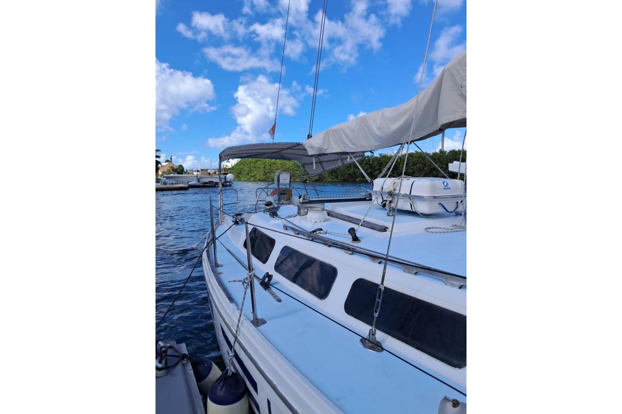 This 2 x cabin unit is ready to sail .The engine is excellent maintained and is showing only 1100 hours. She features a set of new sails, a Selden furling system, Raymarine instruments, a Bimini and teak swimming platform ,liferaft for 8 person etc.