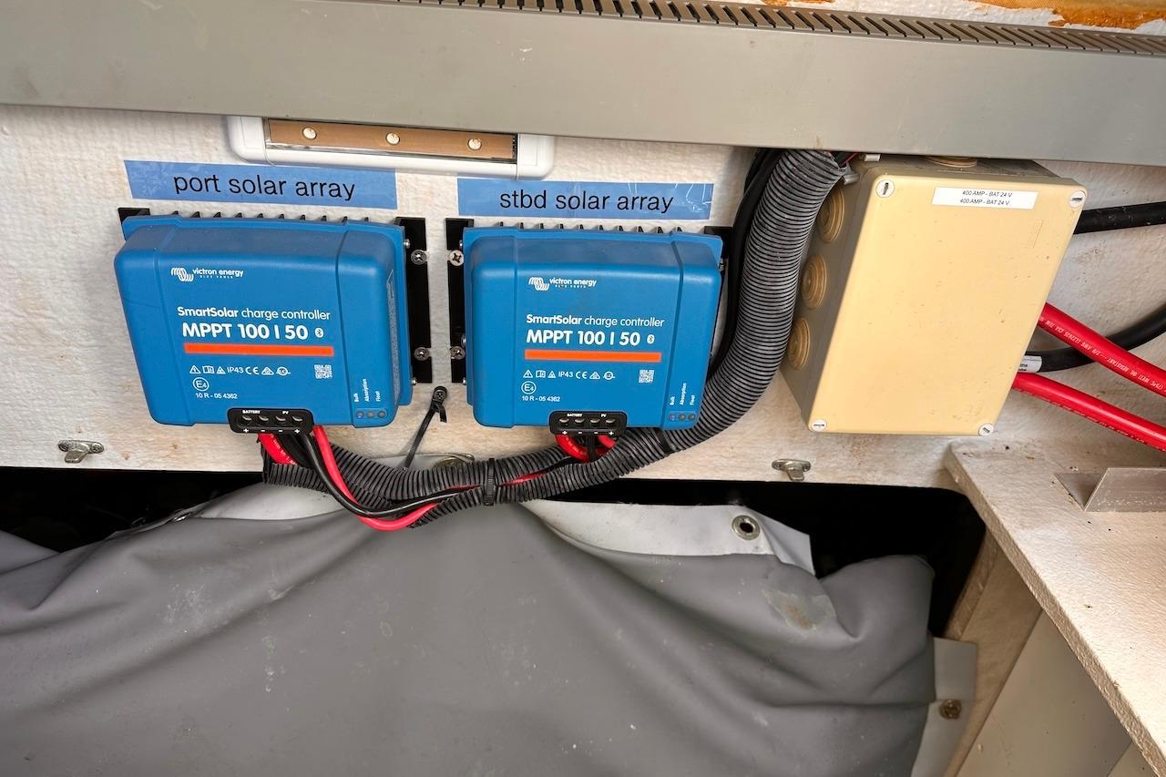 Energy autonomy is enhanced with 4 x 410W solar panels and a 24V Mastervolt 550Ah house battery bank.