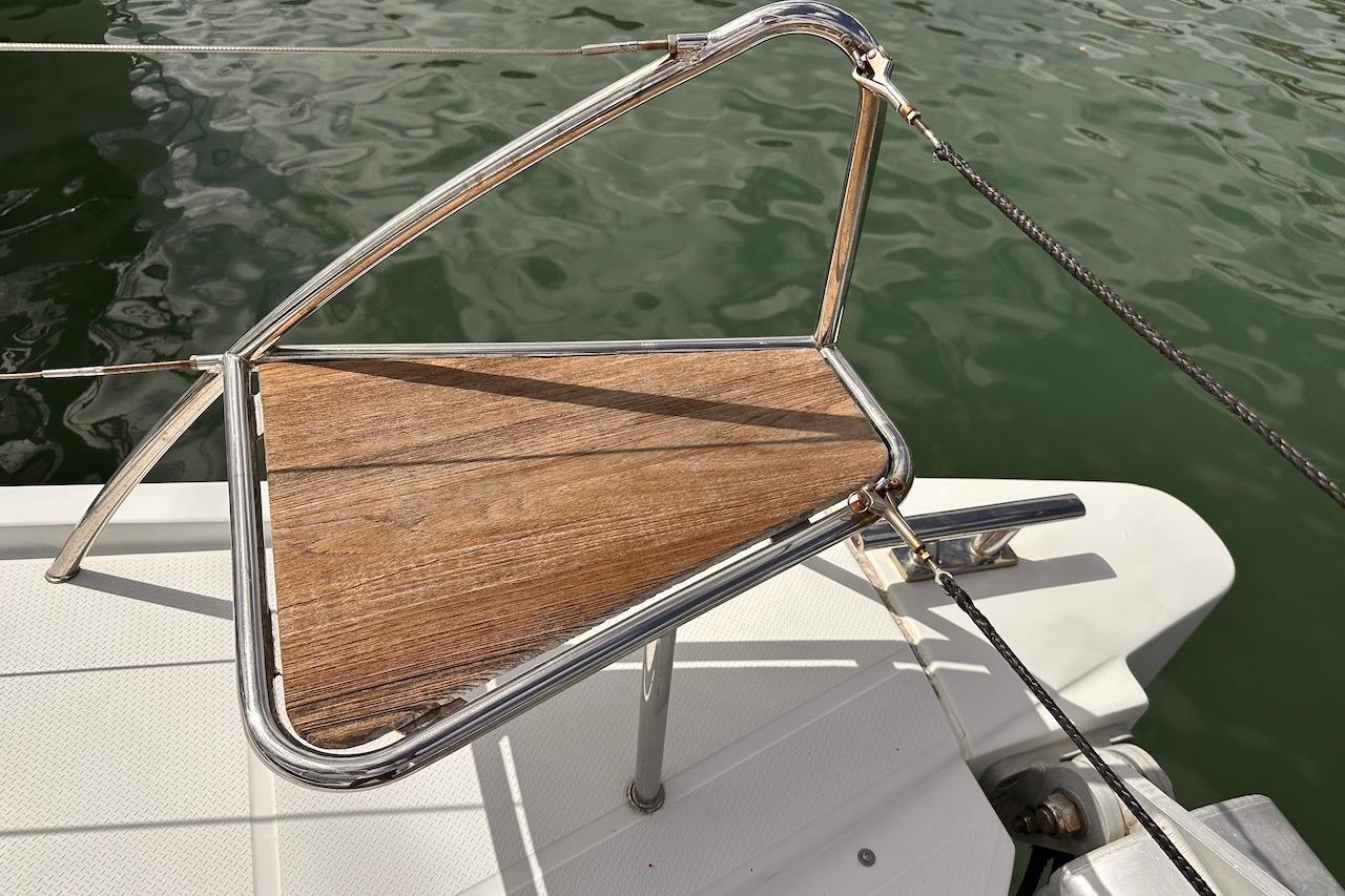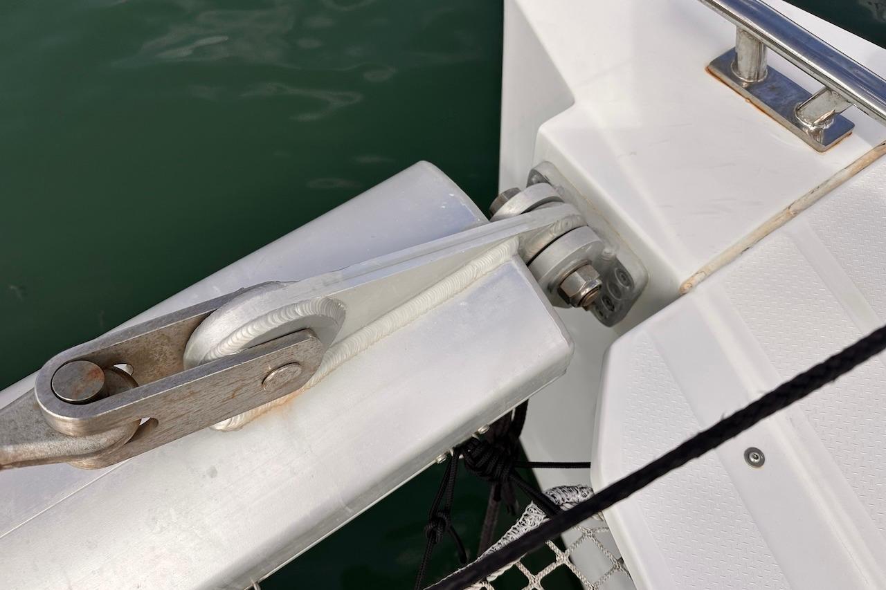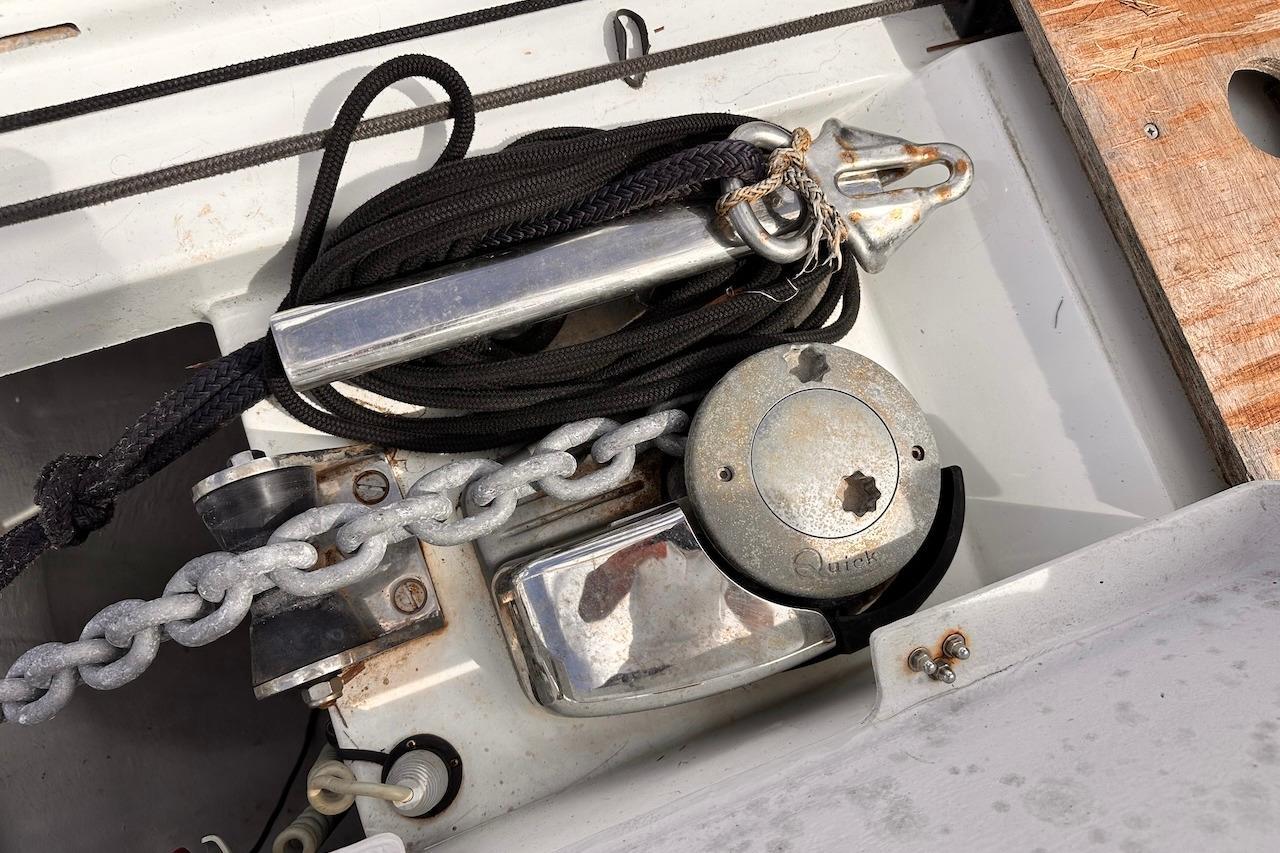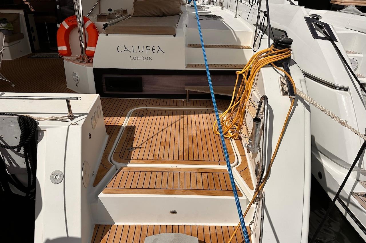 She comes with a lightweight AVB Hypalon 4.2m tender with Suzuki 15HP electric start outboard, significantly lighter than the original tender, improving sailing performance.