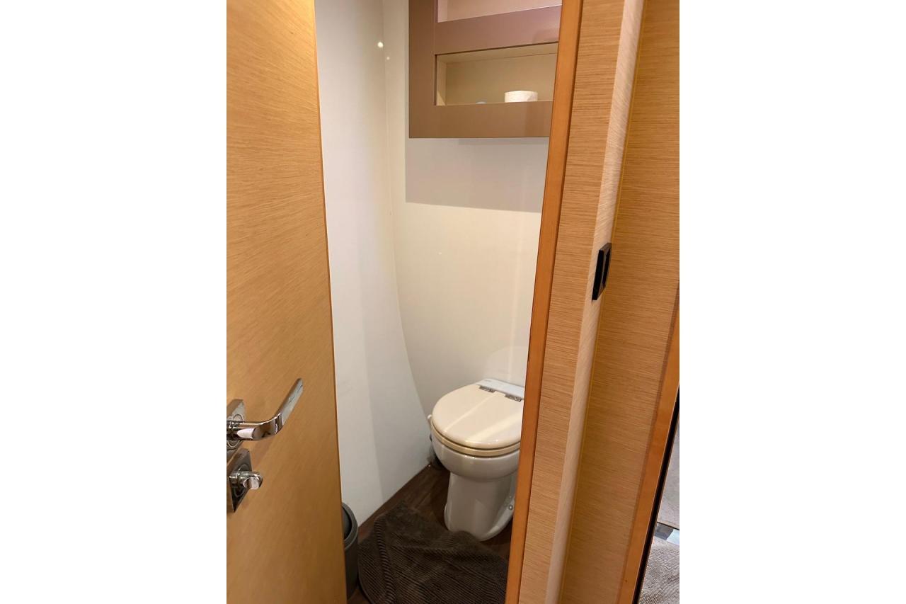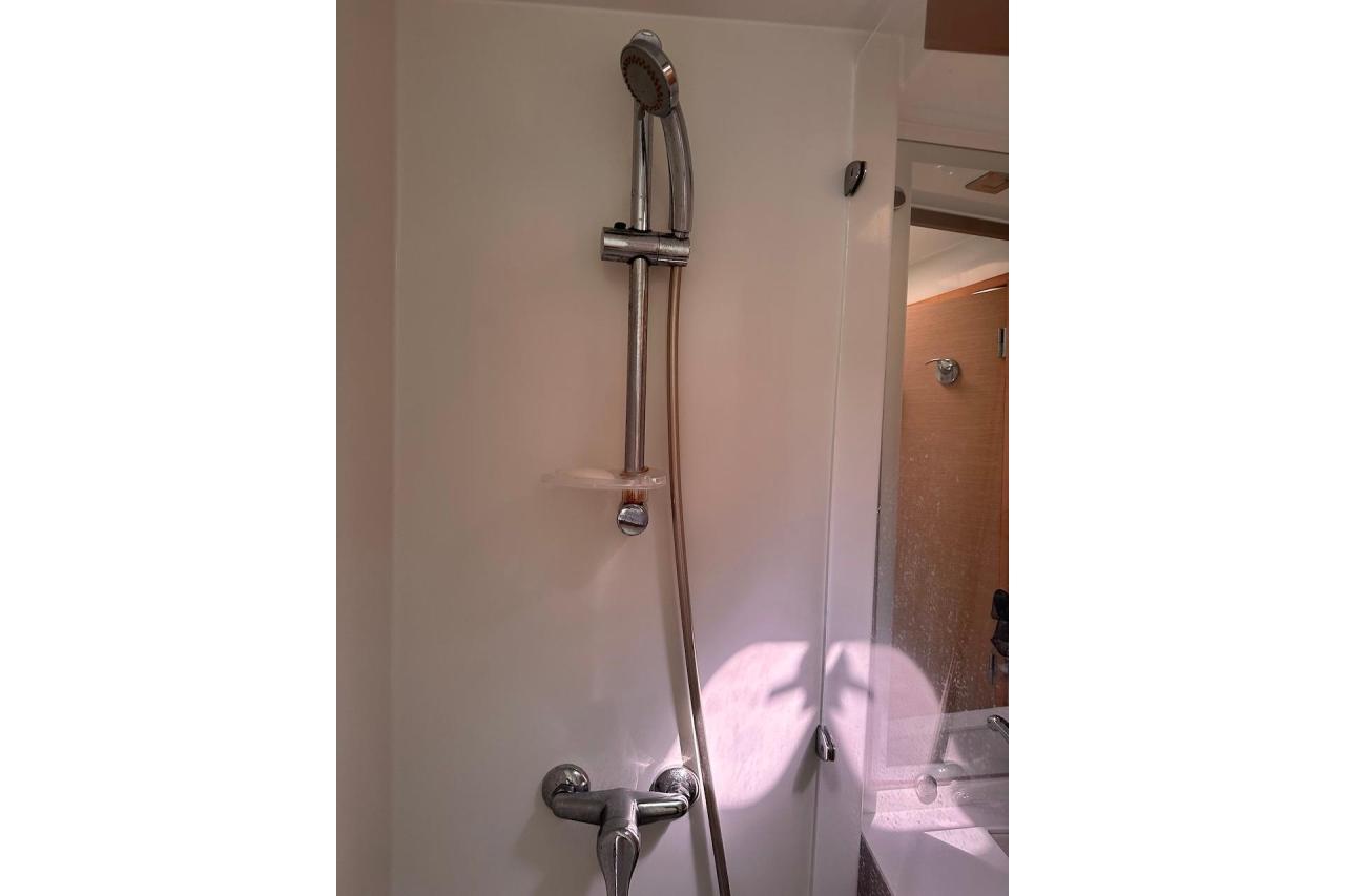 Port hull owner’s cabin with private bathroom with washbasin, shower and separate WC and a double guest cabin with shower, wc.