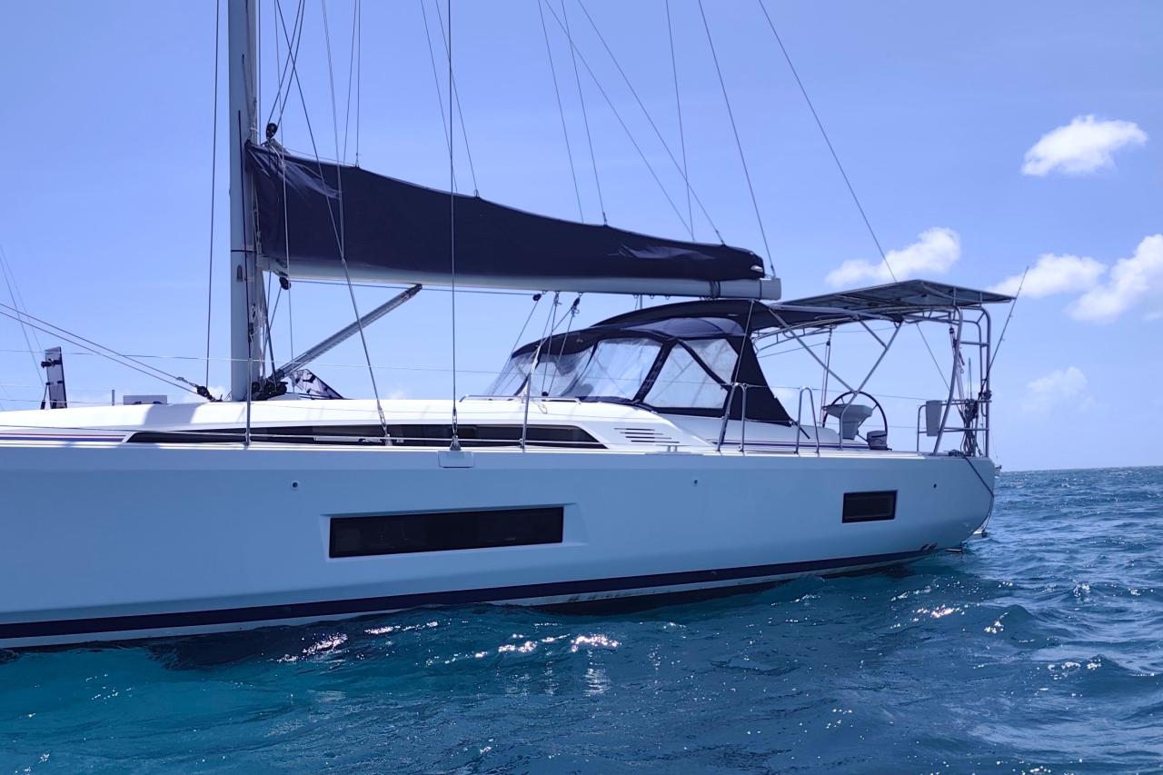 This well-maintained and thoughtfully equipped example includes a foldable swim platform, a new 120L watermaker, a new dinghy with outboard engine, a stainless steel arch supporting dinghy davits and solar panels, air conditioning, and a bow thruster, among many additional upgrades.